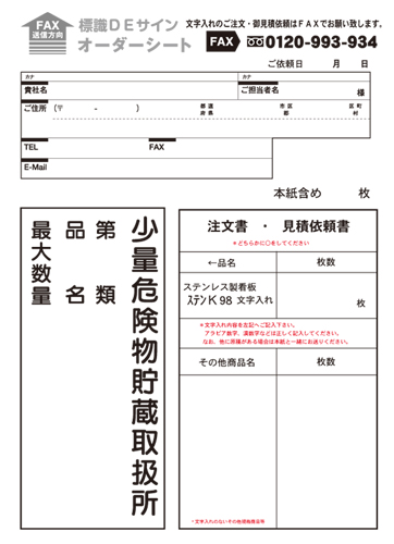 ステンK98 ステンレス製標識 「少量危険物貯蔵取扱所+類別」