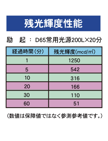 残光輝度性能表