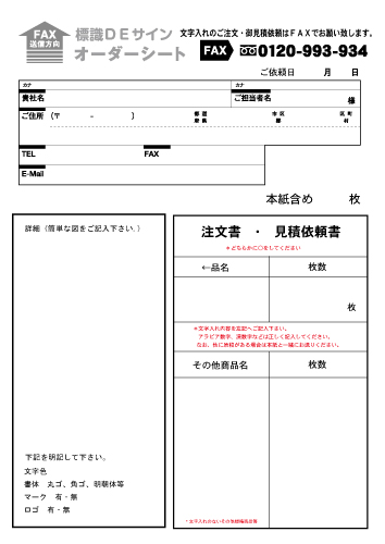 見積依頼は、下記オーダーシートにてFAXでお願いします。