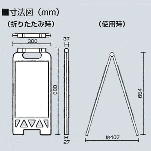 ポケット付フロアスタンド 黄 両面 樹脂製 680×300㎜