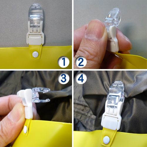 ③ チャックを上から押さえて止める
