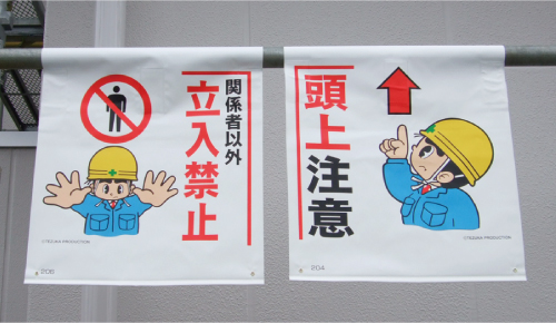 単管たれ幕232 「危ないと気付いた・・」 ターポリン製 500×450㎜(取付時)