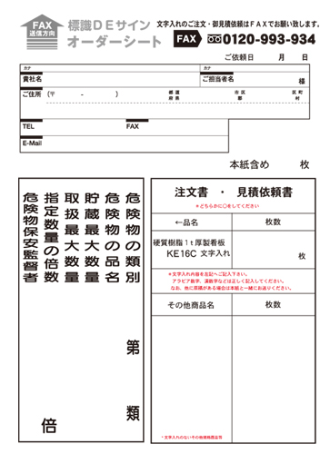 文字入れ加工(切文字ステッカー) 上記看板文字入れも承ります。 お値段の目安は1文字200円、 20文字~40文字一律 名入れ代¥4,000円、 40文字以上につきましては1文字100円で計算してください。 ご注文・見積依頼は下記オーダーシートをFAXでお願いします。 文字入れオーダーシート FAXでのご注文.御見積の場合は、
