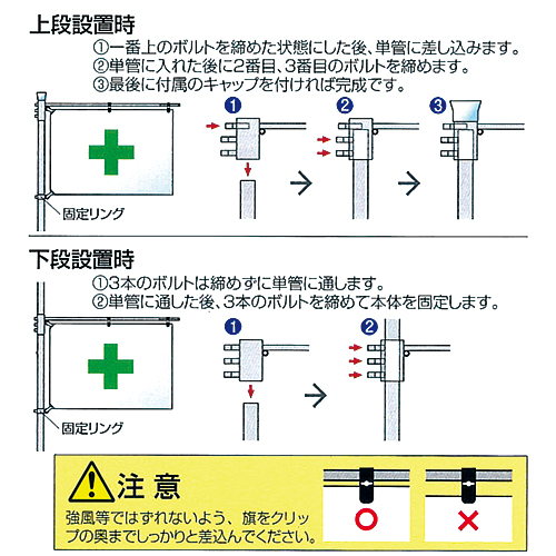 巾が約1000㎜、1300㎜、1500㎜の旗が使用できます。