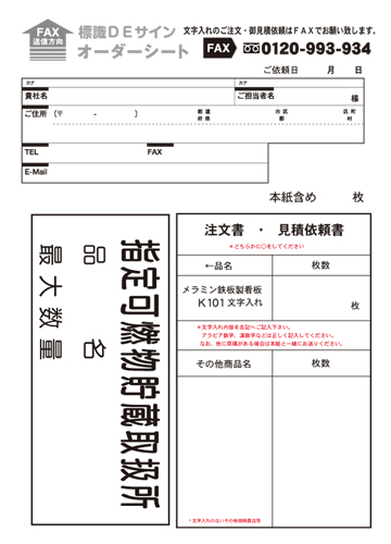 文字入れ加工(切文字ステッカー) 上記看板文字入れも承ります。 お値段の目安は1文字200円、 20文字~40文字一律 名入れ代¥4,000円、 40文字以上につきましては1文字100円で計算してください。 ご注文・見積依頼は下記オーダーシートをFAXでお願いします。 文字入れオーダーシート FAXでのご注文.御見積の場合は、オーダーシートをご利用ください。 承認図あり 必要な場合承認図をご用意できます。 明治山上げ加工とは 明治山上げ加工とは、周囲フチが平らでそこから山のように盛り上がり板面をまた平にした加工をいいます。