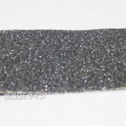 裏面のアップと使用方法 屋外凹凸面のさまざまな下地に貼ることができます。基材にアルミホイルを使用 【使い方】 1.下地のホコリや錆、水分、油分、ワックスなどを取り除き、乾燥してください。 2.テープを必要な長さにカットし、はく離紙を剥がしながら貼り付けてください。   (紙ハサミを使ってカットすると刃こぼれをする恐れがあるので丈夫な万能ハサミな   どをご使用ください。) 3.貼りつけた後、上からローラーやゴムハンマーなどで強く圧着してください。 表面のアップ と  注意 表面はアルミナ系骨材/ウレタン樹脂を使用 【注 意】 ●雨の日や寒い日は避けて、天気のよい10℃以上の温度で作業してください。 ●コンクリートなど下地によっては、接着性が十分に得られない場合があります。  このときは別売り品プライマーを刷毛等で下地に塗って乾燥したあとに貼り付けて使 用してください。 ●粘着面に手を触れたり、貼り直しをすると粘着力が弱くなります。 ●剥がすときは、下地表面を破損したり、のり残りすることがあります。 メーカーデーターシート 詳細なご説明は、メーカーデータシートをダウンロードしてください。 メーカー品番AS-127になります。