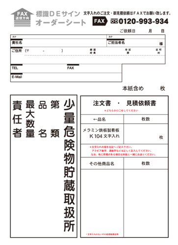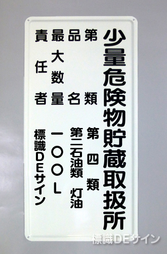 K104 鉄板製標識 「少量危険物取扱所+類別(責任者)」