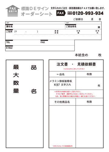 ご注文・見積依頼は下記オーダーシートをFAXでお願いします。