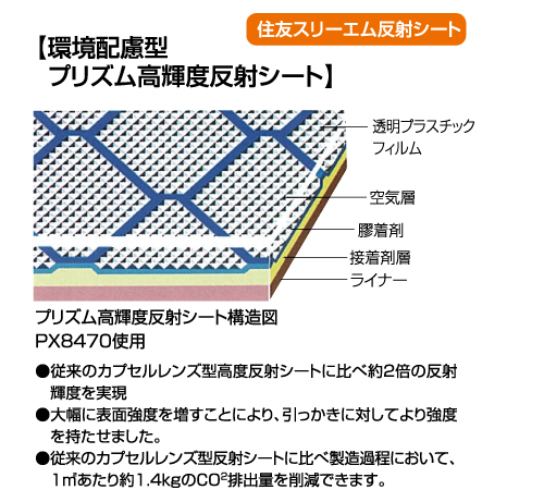 住友スリーエム製 環境配慮型プリズム高輝度反射シート