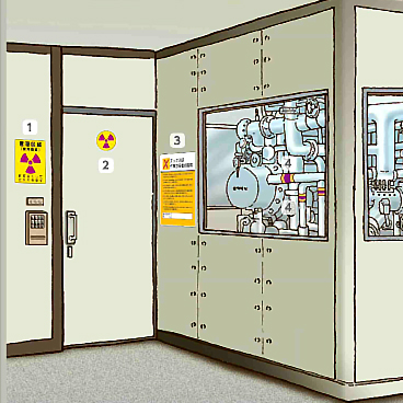 放射線を発する装置の出入り口にこちらの放射能標識を設置下さい。