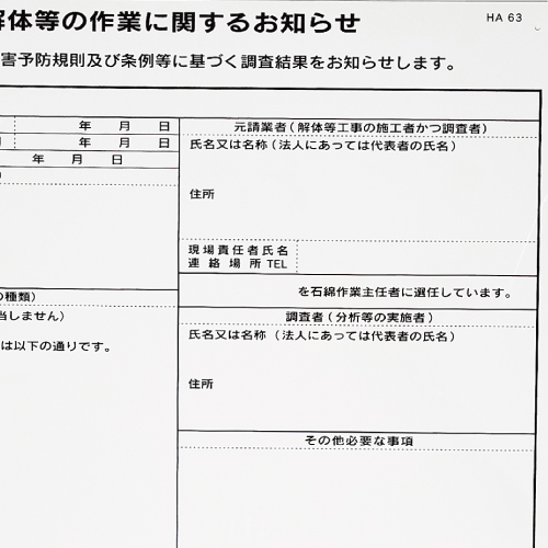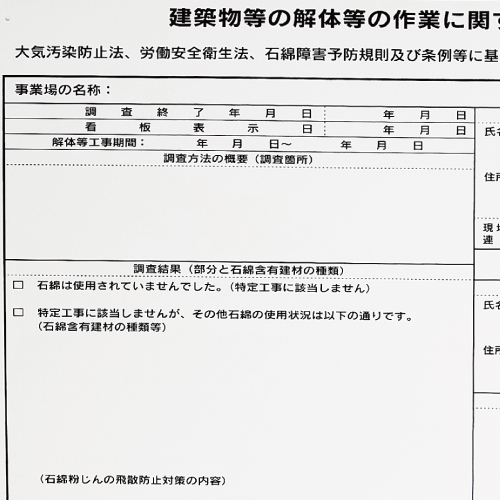 厚生労働省、 環境省の石綿関連通達に準拠した様式です。