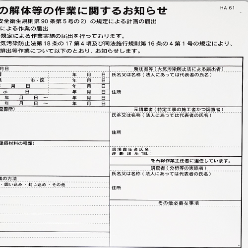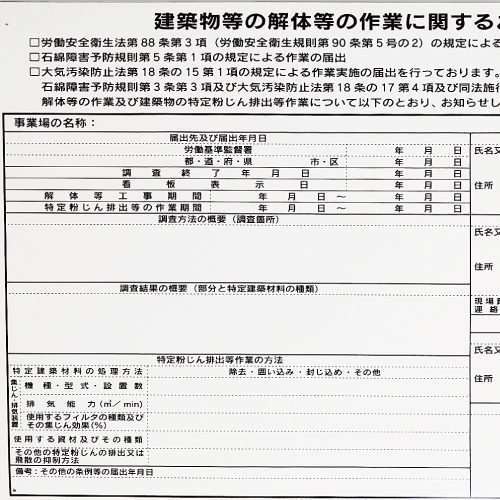 厚生労働省、 環境省の石綿関連通達に準拠した様式です。