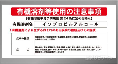これに伴い、有機溶剤を使用する作業場・粉じん作業を行う作業場の有害性等の掲示内容が変更にな り、