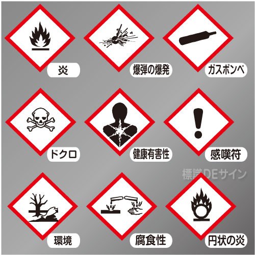GHSシンボルステッカー 「炎」 中 ◇一辺 70㎜【5枚/1組】